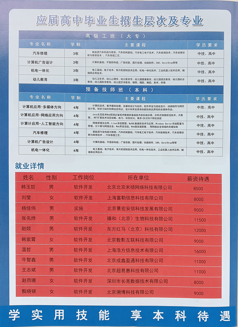 邯郸技师学院(邯郸交通学校)集中专、大专(3+2)、技工、高级技工、预备技师和职业技能鉴定为一体的综合性国办院校。1989年建校,2000年被评为省级重点,2006年被评为国家重点,2008年晋升为“邯郸交通高级技工学校”,2011年晋升为“邯郸交通技师学院”,2014年经省政府同意更名为“邯郸技师学院”。有标准化多媒体教室50个,计算机700多台,舞蹈房、琴房各2个,另有汽车电控、电气、发动机、新能源汽车、机电一体化、机器人实训室等20多个。年招生人数居邯郸市技工院校前列,目前在校人数近3000人。