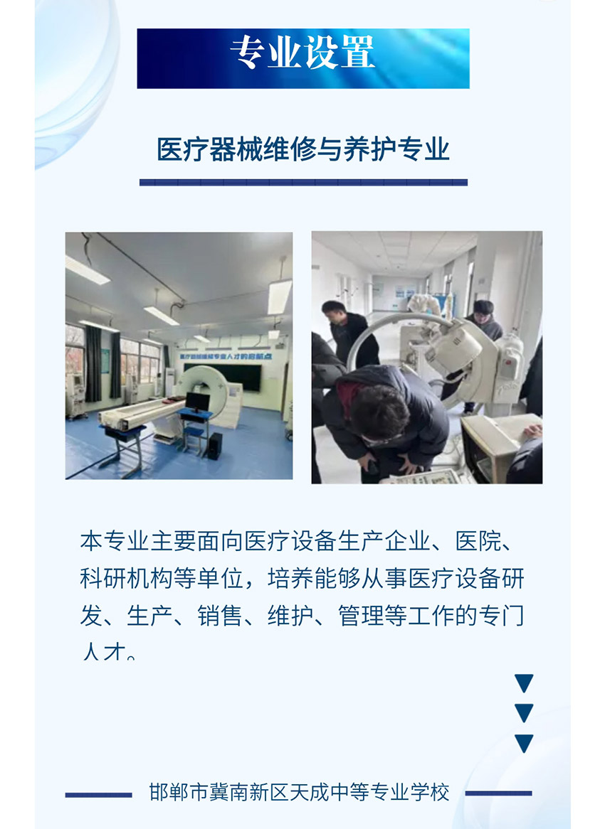 邯郸冀南新区天成中等专业学校坐落于中国邯郸职教城,是经河北省教育厅备案、邯郸教育主管部门批准成立的一所普通全日制高级中等职业学校,是冀南新区政府批准的招商引资项目。校区可容纳4500名学生。我校是一所集职教高考、艺术文化、特色专业、国际留学及高品质就业为一体,以打造产教融合职教新高地为目的,致力于建设最有成就感的示范性精品职业学校。